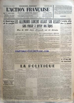 ACTION FRANCAISE (L') [No 160] du 08/06/1940 - L'AMERIQUE ET LE CONFLIT - LES ALLEMANDS LANCENT ASSAUT SUR ASSAUT SANS REUSSIR A PERCER NOS LIGNES - L'AVIATION ALLIEE DANS LA BATAILLE - L'ITALIE AU TOURNANT - MUSSOLINI - LA POLITIQUE PAR MAURRAS - ROOSEVELT DEMANDERAIT AU CONGRES DE VOTER LA LOI DE RETOUR DES ARMEMENTS AUX FABRICANTS PDF Kindle